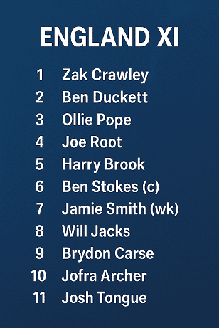 Captain Ben Stokes highlighted the need for flexibility and sharp adaptation to match conditions, stressing that Tongue’s inclusion is designed to maximise England’s chances in this must-win encounter. Although Tongue is not a complete newcomer to international cricket—having represented England in previous Tests and other fixtures—this is his first appearance in the Ashes series, adding interest to his performance.